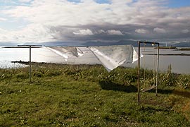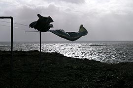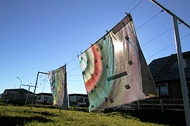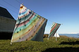 Framtíð (dúkur á snúru, vatnslitir) / Future (canvas on clothlines, vatercolors)